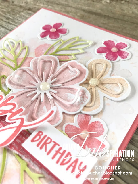 The colour combination for #CI96 are Petal Pink, Blushing Bride, Flirty Flamingo, Melon Mambo and Granny Apple Green. As well as the chosen colours you may also add Basic White, Basic Black, Very Vanilla, Crumb Cake, Sahara Sand and metallics to your project. We also allow 'Ivory' and 'Bronze' in the Stampin' Blends. If you don't have all the colour palette, feel free to use the closest SU substitute (ie: Pear Pizzazz instead of Granny Apple Green .... you get the drift).
